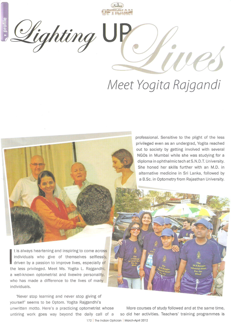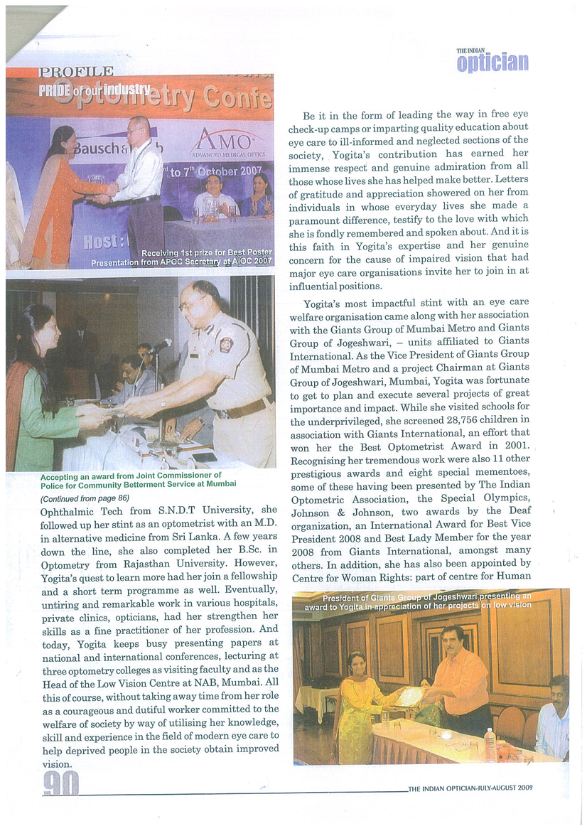 17. Received Award for Best Paper in Low Vision at 36th All India Optometry conference-Agra on 8th September 2014.